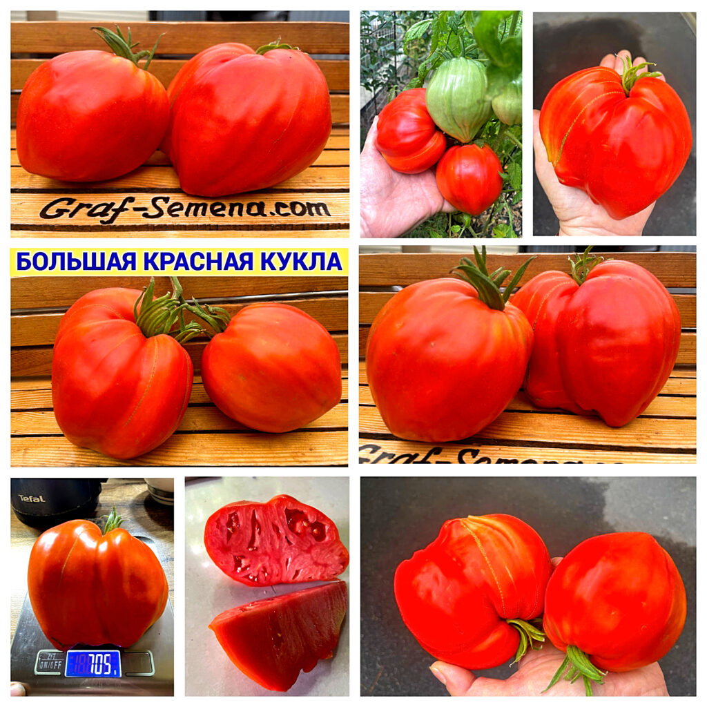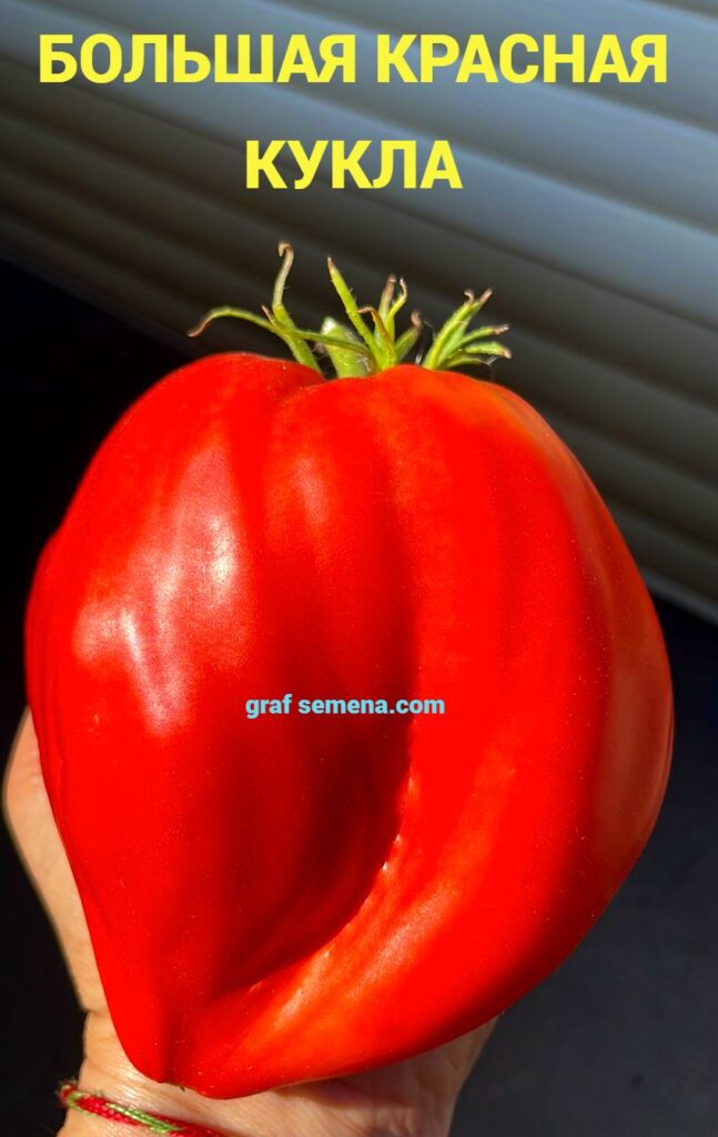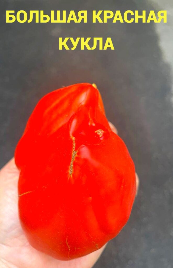 Потрясающий уникальный среднеспелый сорт, который шокирует своим внешним видом. Это огромные ярко-красные сплющенные сердца-гребни, плотные, идеального вида. При этом ни намека на зеленые плечики! У основания — пухлые плечики, переходящие в продольные грани по всему плоду.