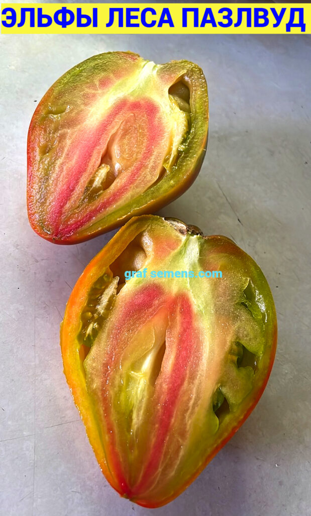 При разрезании сразу ощущается сильный томатный аромат, богатый и насыщенный. У спелых плодов мякоть внутри преимущественно красная, только края остаются зелеными.