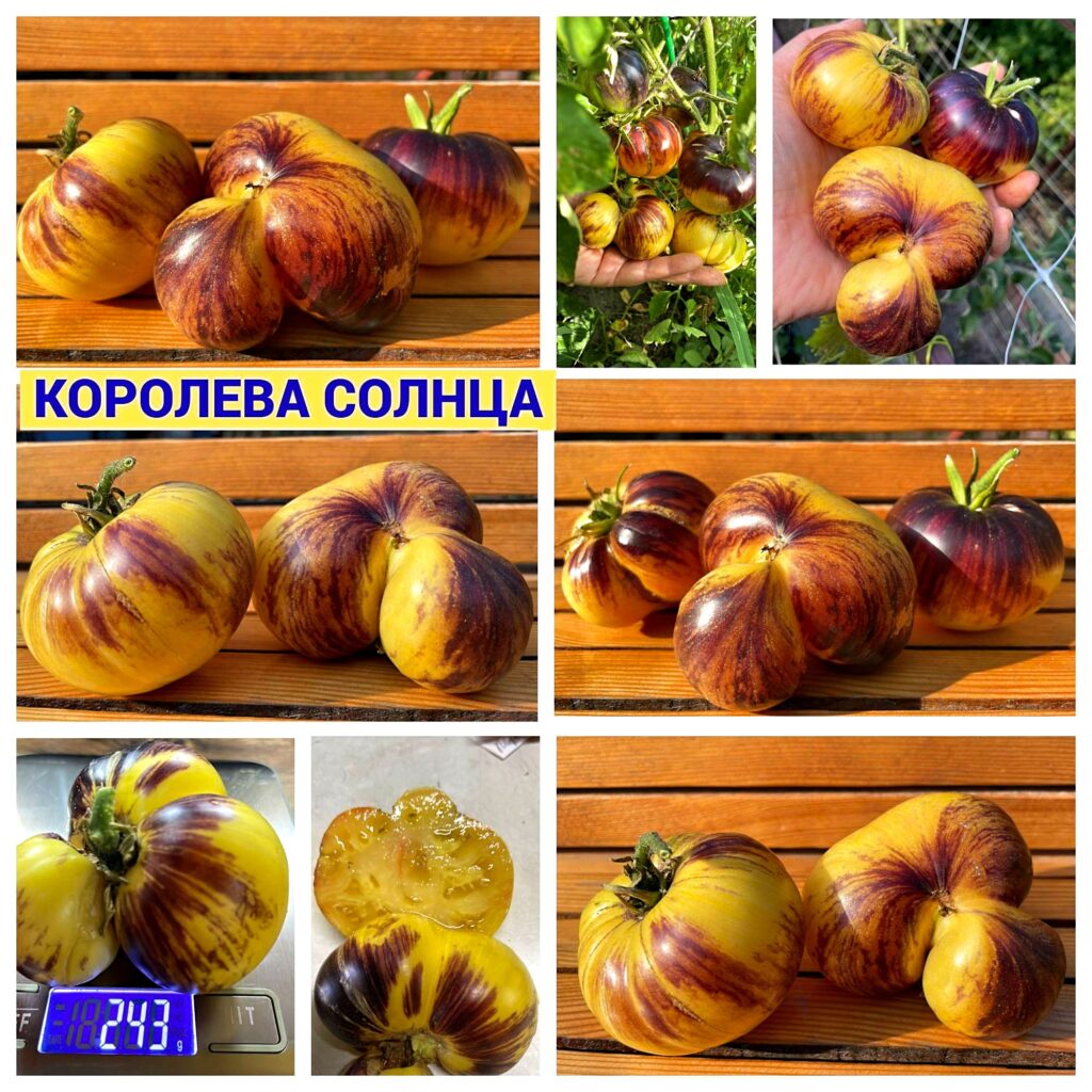 КОРОЛЕВА СОЛНЦА (QUEEN OF THE SUN) Сорт селекции Валдиса Пулиньша, Латвия. Экспериментальный сорт, крест сортов «Королева ночи» и «Оранжевый русский 117». Фантастической красоты сорт! Среднеспелый, с завораживающе красивыми плодами с проявлением антоциана. Куст 1,2 м. в ОГ, крепкий, урожайный! В кисти 3-4 плода весом 230-300 г. Форма плодов — округло-приплюснутая, с ребрышками от плодоножки. Расцветка просто неземная: нижняя часть плода — нежного желтого (кремового) цвета, а сверху причудливыми природными мазками нанесен антоциан. Зрелище просто неповторимое, вызывающее приятное недоверие к тому, что помидоры могут быть настолько красивы! В разрезе — желтая ароматная мякоть, с мелкими семенными камерами, маслянистая, нежная, сочная, очень сладкая с фруктовым послевкусием и невесомой кожицей. Высший балл за красоту плода! Настоятельно рекомендую! Купить сорт КОРОЛЕВА СОЛНЦА:В нашем каталоге очень просто заказать любые позиции. Просто добавьте товар в корзину и укажите свой адрес. Мы отправим семена в любую точку мира. Всегда рады помочь!